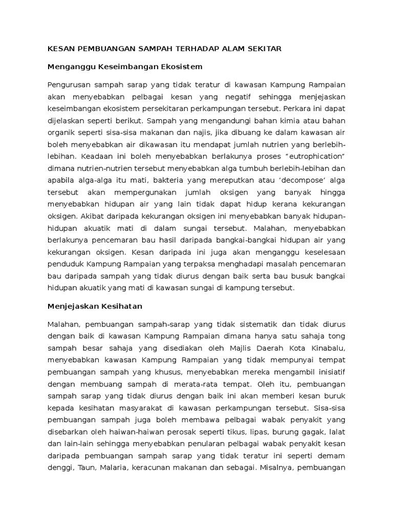 Sejauh manakah anda bersetuju dengan pe. Mengendapnya sisa sisa makhluk hidup. Pembuangan sampah di merata tempat merupakan punca utama pencemaran sistem saliran sungai dan menjadi cabaran dalam pengurusan sisa domestik. Punca krisis air di malaysia. Pengurusan sisa pepejal domestik memerlukan satu sistem pelupusan sistematik untuk memastikan alam sekitar sentiasa terpelihara.